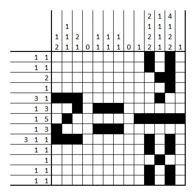 This type of puzzle is a nonogram. The solution to the nonogram is: