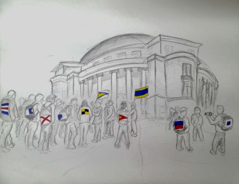 Walking past Convocation Hall, you see a gaggle of tourists taking photos.