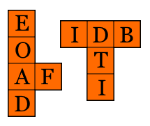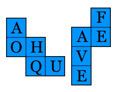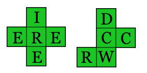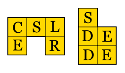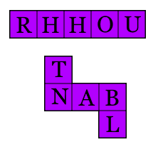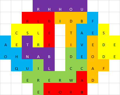 Each shaded horizontal row is a word with a letter missing. However, there are two different letters that could make a valid word for each row.