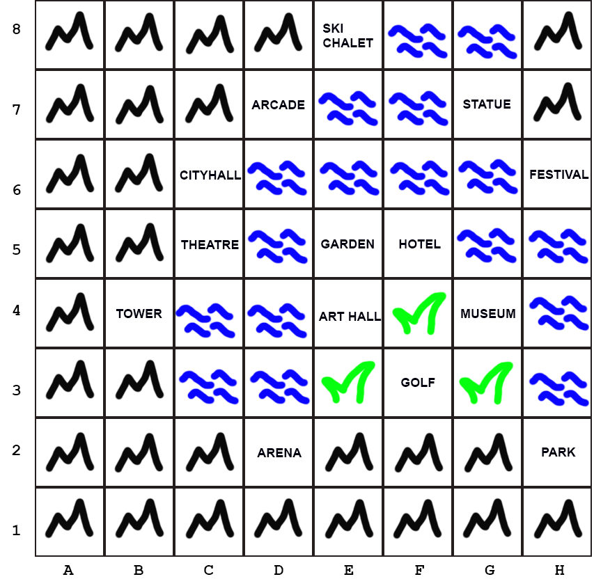 I just arrived in the busy city of Chestborough and my friends insist that I come with them on a night tour of the city. But before I start, I got a map of the city from a friendly local. I also mapped out all of the attractions that I need to visit - but I do not have much time so there is no room to stop and see the scenery - I must visit everything below in the lowest time possible.